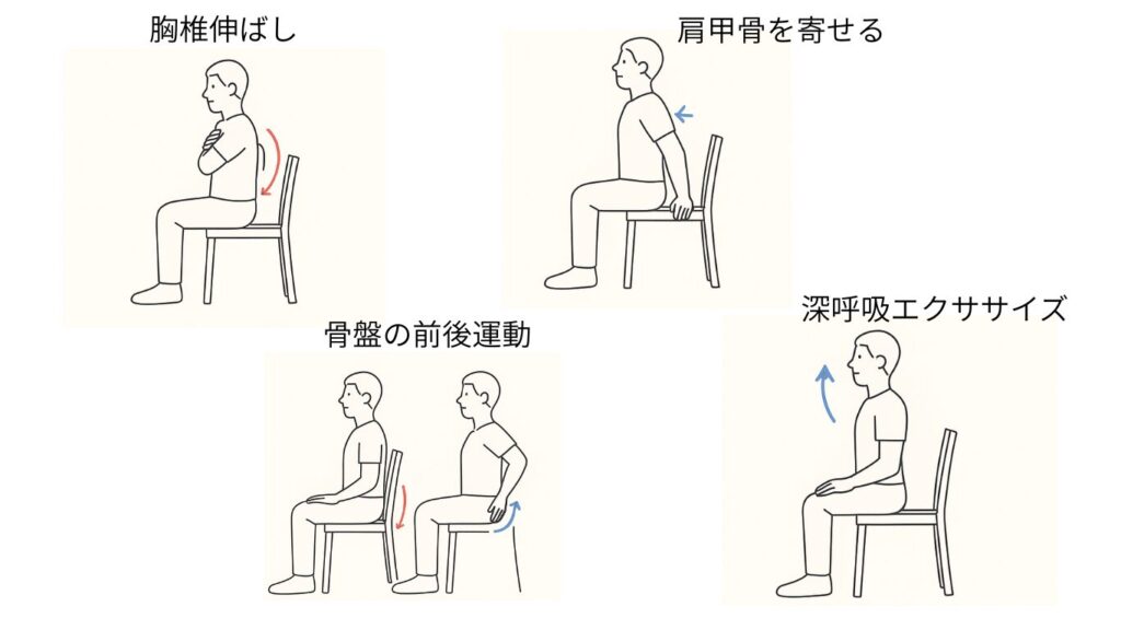 - 座位でできる胸椎伸展・骨盤運動は安全で継続しやすい