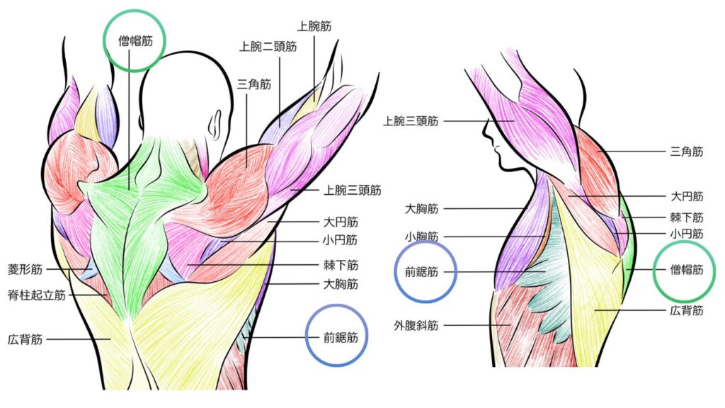 - 僧帽筋(上部・中部繊維)